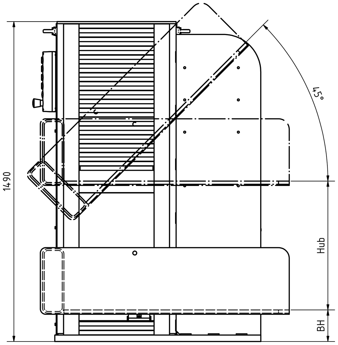 | HNE 750 R/L | 750 | 1.250 | 850/1.050 | seitliche Beladung (R/L) | 150 | 600 | 1 x 45° | not |